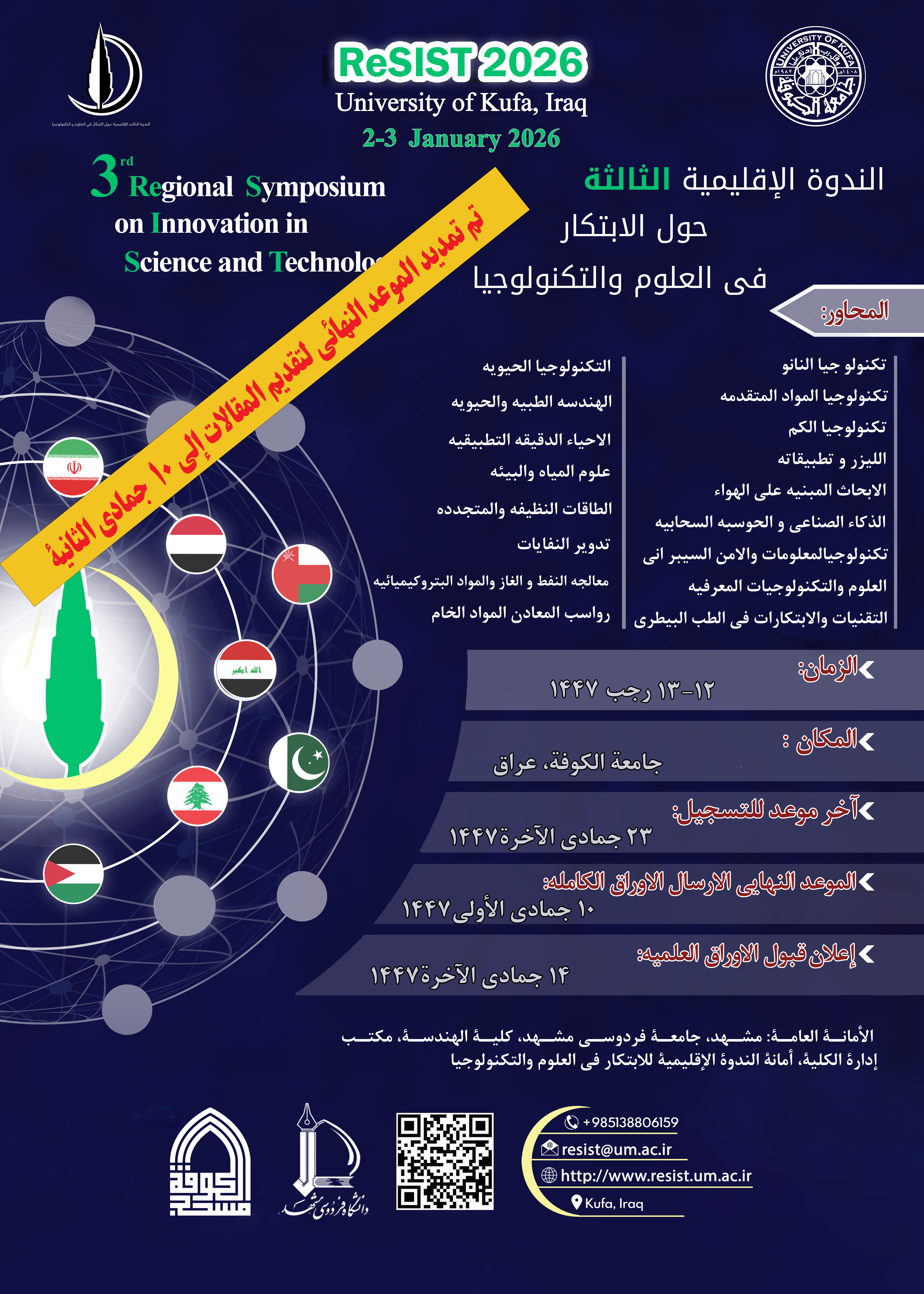 1- تم تحميل ملف البروسييدينغ للدورة الثانية من الندوة الإقليمية للابتكار في العلوم والتكنولوجيا التي أقيمت في جامعة فردوسي مشهد على موقعنا الإلكتروني. انقر هنا لعرض الملف.